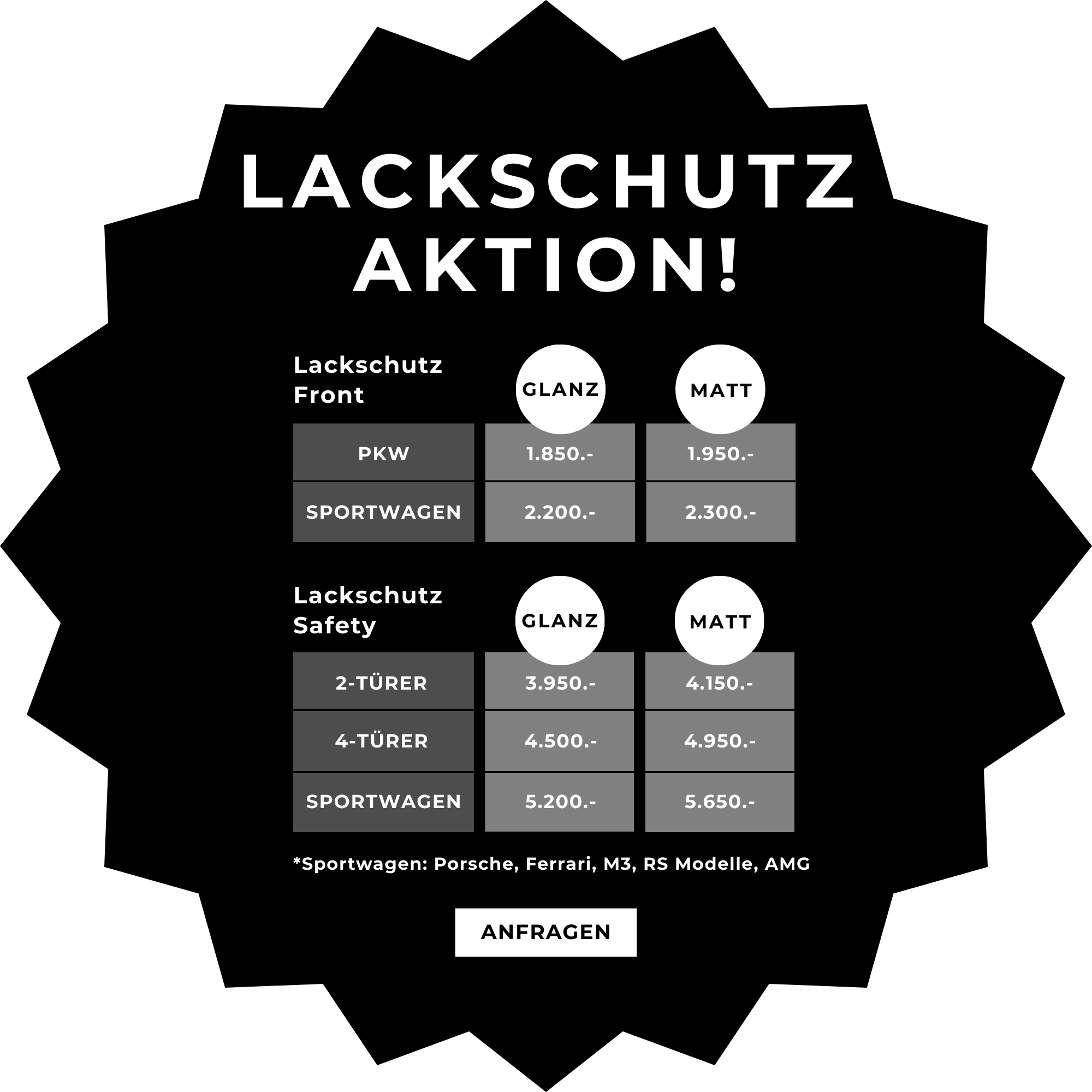 Gerade bei sehr teuren Sportwagenmodellen empfehlen wir uneingeschränkt eine Lackschutz Folierung. Der Lack wird geschützt, der Wert des Autos bleibt erhalten und somit steigt auch der Wiederverkaufswert. Lackschutz schützt Ihren Sportwagen vor Umwelteinflüssen wie Vogelkot, Harz oder Steinschlägen. Lackschutz wird deswegen auch Steinschlagschutz genannt.