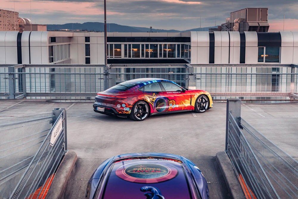 Bunt, leuchtend, elektrisierend, so zeigt sich Las Vegas seinen Besuchern. Die Stadt in der kalifornischen Wüste macht die Nacht zum Tag und sorgt für unglaubliche Emotionen. Das spiegeln die beiden Porsche Taycan wider. Faszination fürs Auge, das immer wieder neue Details entdeckt und den Beobachter fesselt. Die kreativen Köpfe hinter den Porsche-Geschwistern sind Gründer und Inhaber von SIGNal Design und der Künstler Timo Wuerz. Beide haben eine Leidenschaft für die Marke Porsche und reisten viel nach Las Vegas. „Es gibt wenig Städte auf der Welt, die so bunt und so flashig sind wie Las Vegas, das passt sehr gut zu meinen Designs“, so Timo Wuerz. „Viele Designelemente sind aus dem Hard Rock Hotel, wo wir immer übernachten haben. So ist der Porsche Taycan im Las Vegas Design nicht nur ein Kunstwerk, sondern gleichzeitig eine Lebensgeschichte.“