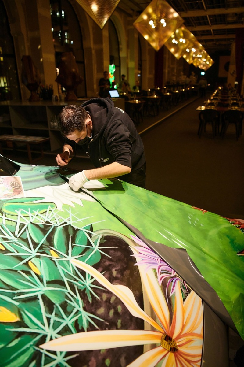 Nun vertraute das Team um den Künstler erneut auf die Expertise des Welt- und nun vierfachen Europameisters im Car Wrapping. Phillips Kunstwerk wurde in neuen Perspektiven und Winkeln nach den Vorstellungen des Künstlers in voller Größe auf Vinyl gedruckt und anschließend mit Hilfe von Heißluftpistolen auf das Fahrzeug aufgebracht. Das Kunstwerk entstand im Dezember vergangenen Jahres als Show-Folierung über eine Woche hinweg in einem Pop-up-Restaurant in Zürich und wurde später über das Auktionshaus RMSothebys versteigert. 200.000 US-Dollar kamen nach sieben Tagen Onlineauktion und mehr als 50 Geboten für das mobile Kunstwerk zusammen. Der gesamte Erlös aus der Online-Auktion wurde an Suisseculture Sociale gespendet zur Unterstützung Schweizer Kulturschaffender. Nun sorgte das Design als Extrabonus dafür, dass SIGNal Design sich als der beste Folierer Europas bezeichnen darf.